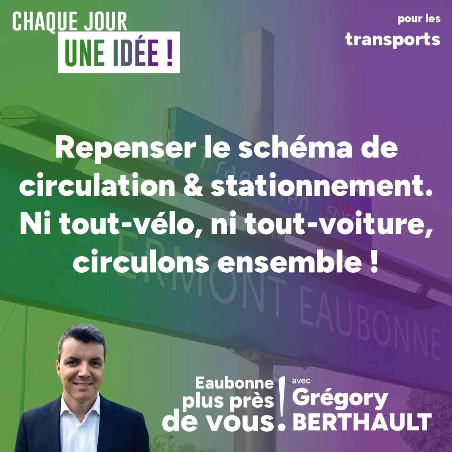 Ce clivage entre vélo et voiture est fatiguant, délétère pour tout le monde et ne repose sur rien de sérieux. Les deux modes de transports sont indispensables selon les populations. Le premier est écolo, le deuxième peut le devenir si les bonnes politiques sont menées. Alors, pour Eaubonne, ce clivage, nous n'en voulons pas non plus. Un code de la route pour tous comme point de départ, et à partir de celui-ci, des dérogations sont possible si et seulement si elles font sens, comme le tourne-à-droite au feu rouge. Autant que possible, des espaces de circulation clairement délimités, des sens de circulation lorsqu'ils reposent sur le bon sens ce qui donnera naturellement sa place au vélo. Je préfère infiniment que tout Eaubonne n'ait pas de pistes cyclables partout mais que celles-ci soient claires, et donc sûres, idéalement séparées, plutôt que de rester sur la vraie fausse cohabitation fantôme actuelle. C'est une question de confiance, de respect, de sécurité, d'inclusion.